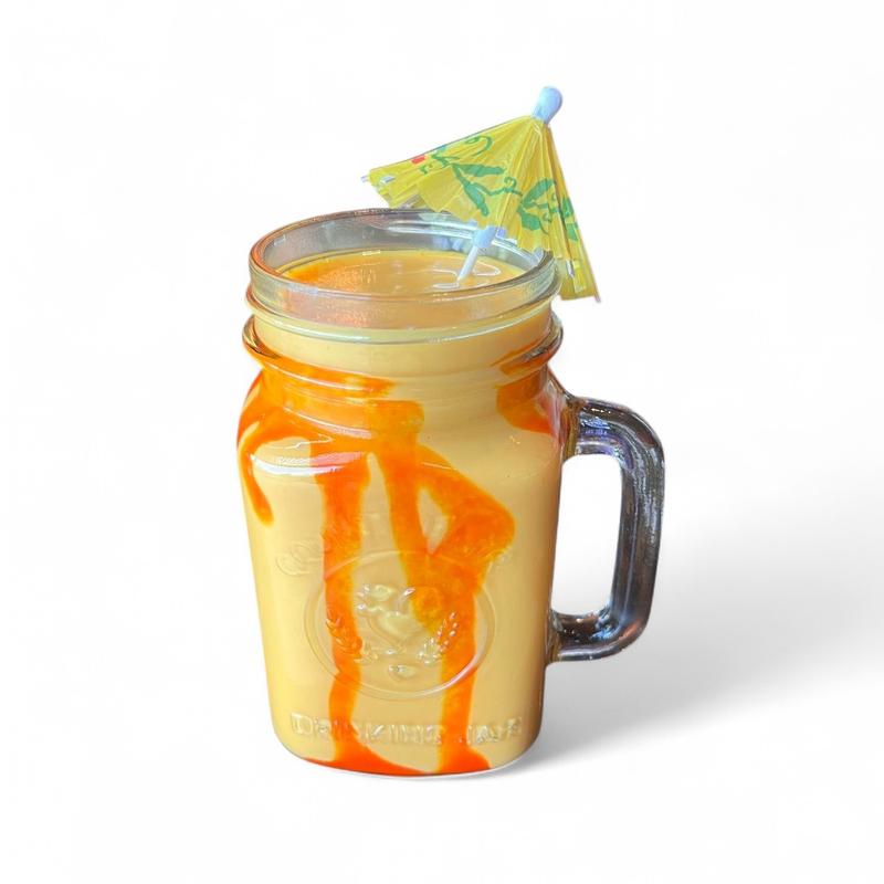 A rich, creamy blend of ripe mango and yogurt, offering a sweet, tropical yogurt smoothie refreshment