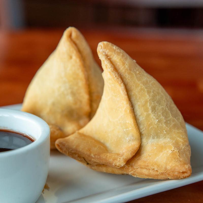Crispy deep fried pastry stuffed with spiced minced lamb